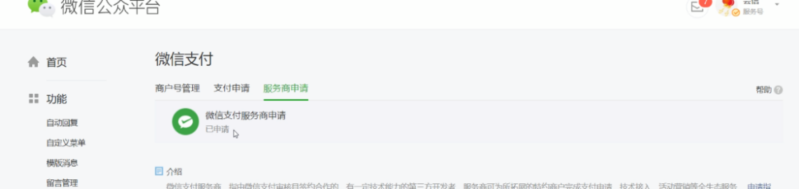 主平台通过公众号平台mp.weixin.qq.com,开通服务商