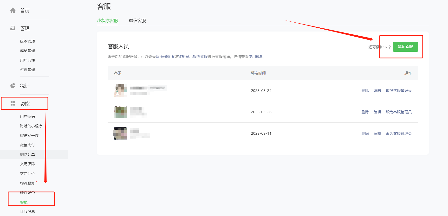 对接完成后,还需要绑定下小程序在线客服。
