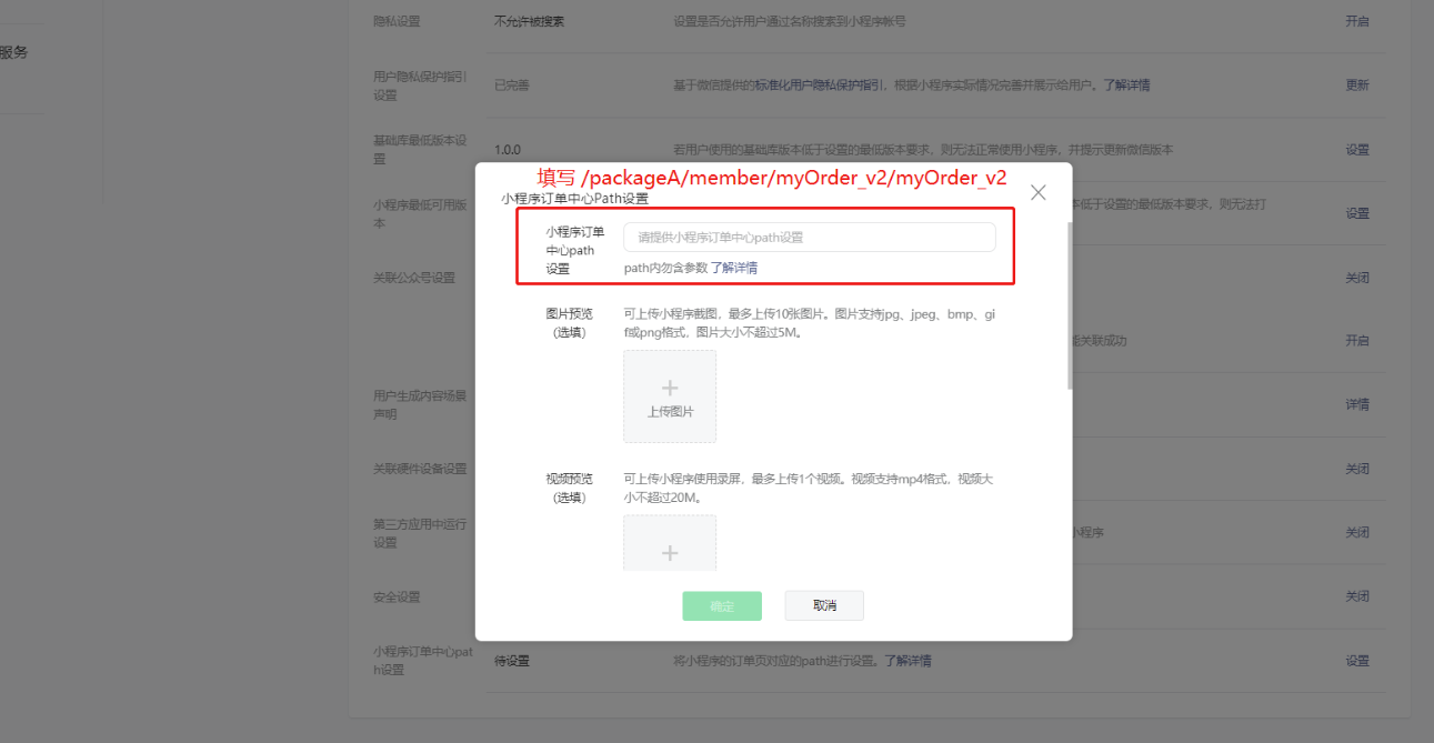 新增了设置path设置:代码提审环节设置订单中心path,填写: /packageA/member/myOrder_v2/myOrder_v2