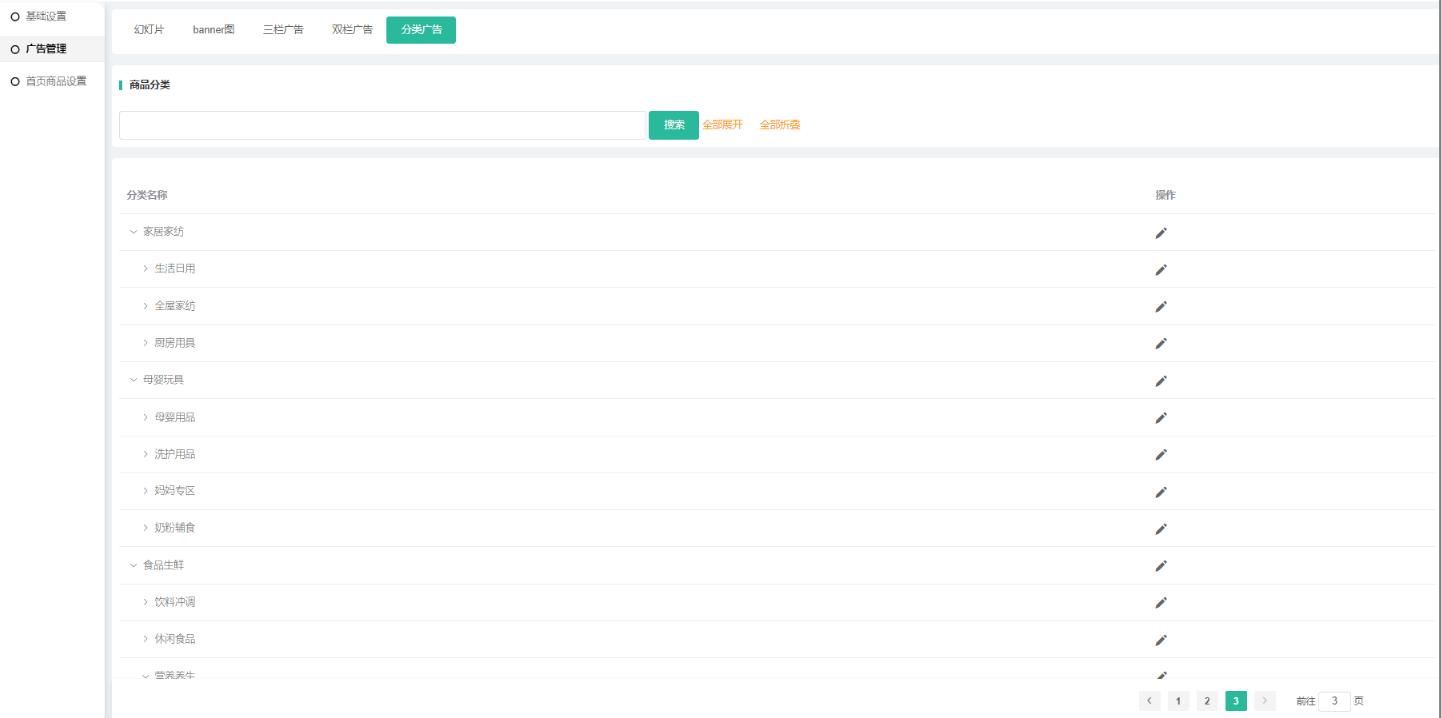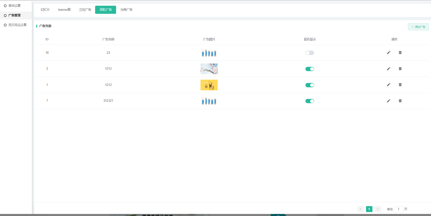 1、幻灯片:幻灯片创建ID,幻灯片名称、图片、是否显示、编辑或删除。