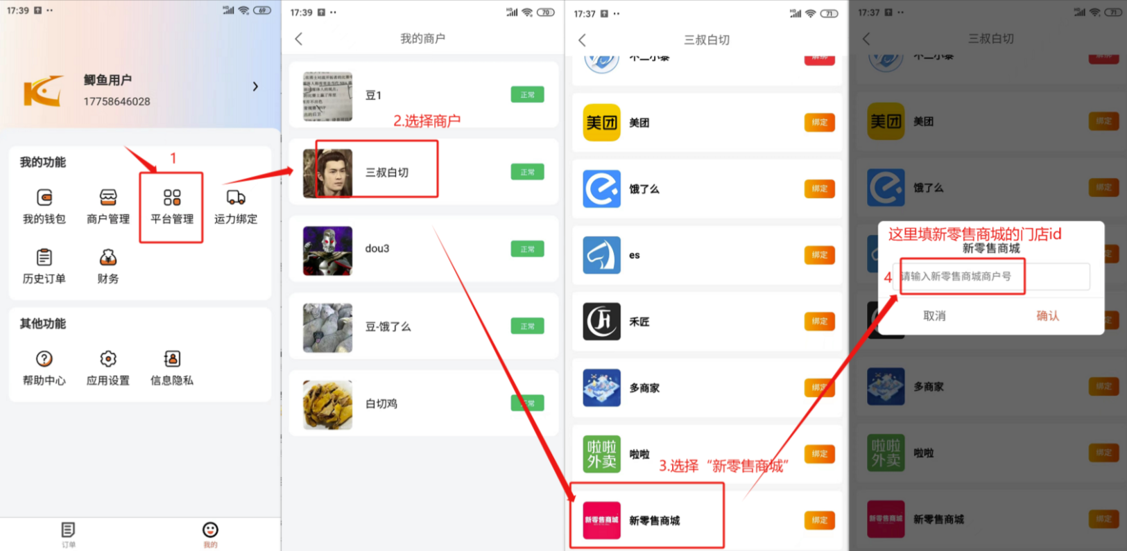 鲫鱼APP前端-平台管理绑定“新零售商城”平台