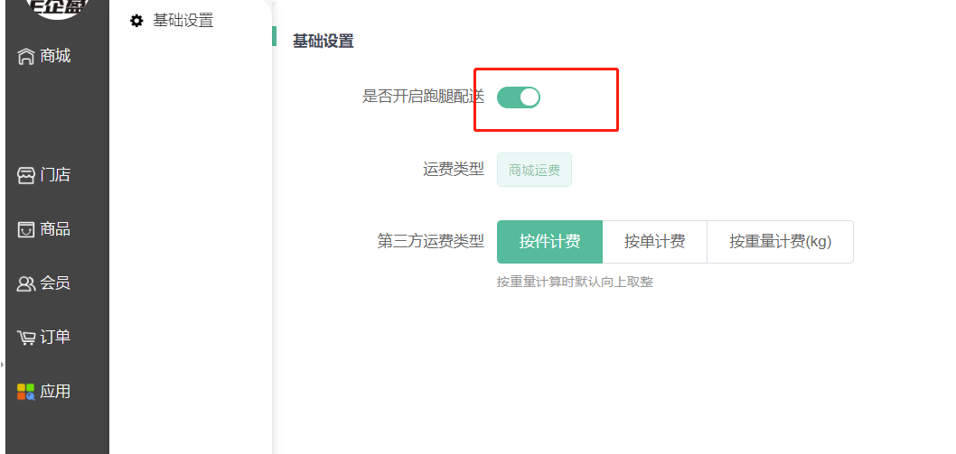 2:登录门店独立后台,应用-跑腿配送,开启按钮。