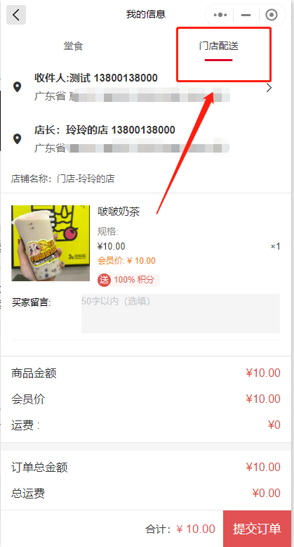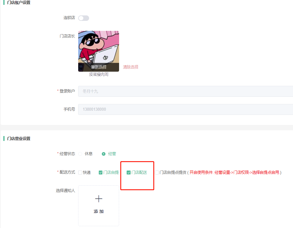 1;总平台开启门店配送方式。